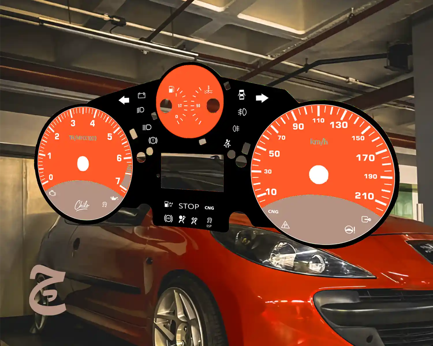 ورق کیلومتر طرح نارنجی خاکستری مناسب پژو 207 این طراحی متناسب با کیلومتر ماشین یا موتور شما طراحی میشود و تفاوتی ندارد که وسیله نقلیه شما از چه مدل و برندی هست زمان آماده سازی ورق کیلومتر 15 روز کاری میباشد