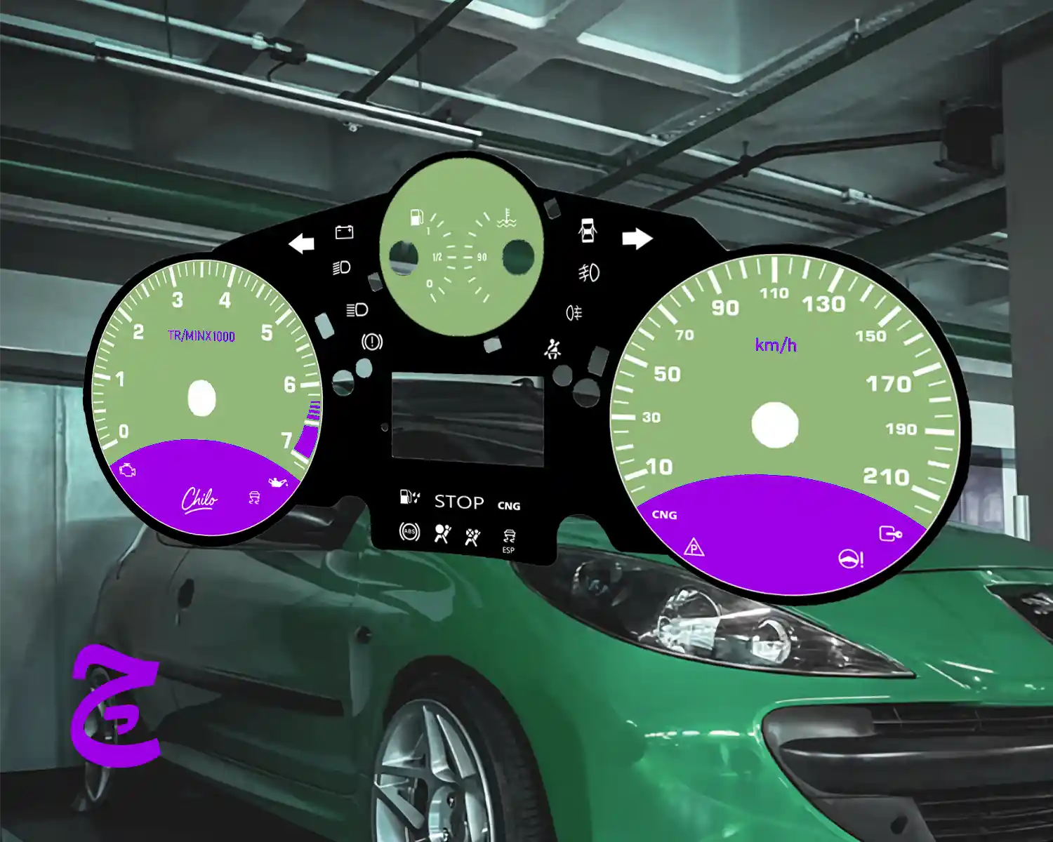 ورق کیلومتر طرح سبز بنفش مناسب پژو 207 این طراحی متناسب با کیلومتر ماشین یا موتور شما طراحی میشود و تفاوتی ندارد که وسیله نقلیه شما از چه مدل و برندی هست زمان آماده سازی ورق کیلومتر 15 روز کاری میباشد