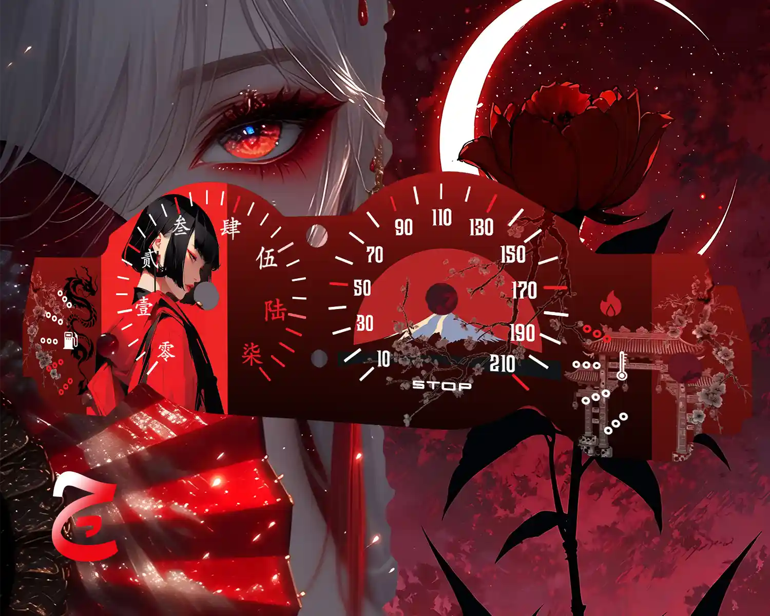 ورق کیلومتر با طراحی و دیزاین ژاپنی قرمز با تلفیق کارکتر انیمه و کوه معروف کشور ژاپن کاملا مناسب برای یاکوزا های ایران زمین در سرزمین چیلو برای تمامی ماشین های موجود از پراید تا تسلا برای اولین بار در دنیا توسط مجموعه چیلو طراحی و تولید میشود