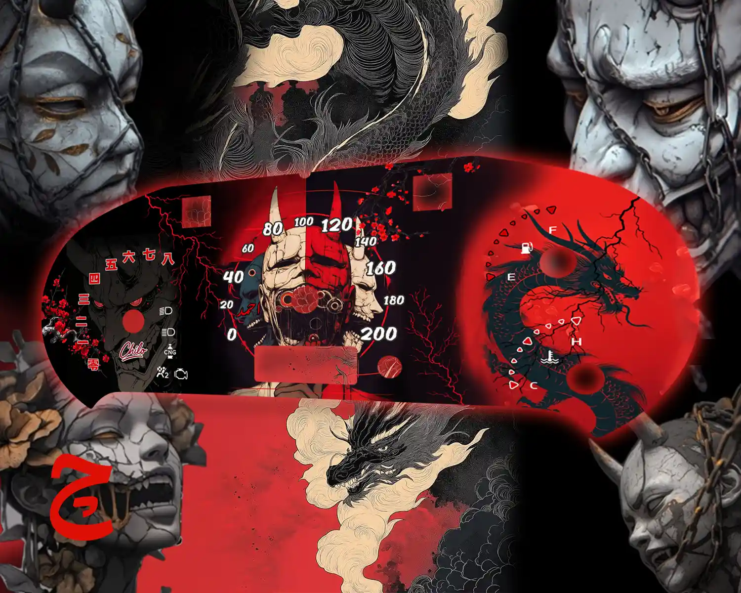 ورق کیلومتر با طراحی و دیزاین سامورایی ژاپنی با اژدها با فضای ترسناک و دلهره اور مناسب ماشینباز های عشق ژاپن و افسانه های ژاپنی در سرزمین چیلو برای تمامی ماشین های موجود از پراید تا تسلا برای اولین بار در دنیا توسط مجموعه چیلو طراحی و تولید میشود