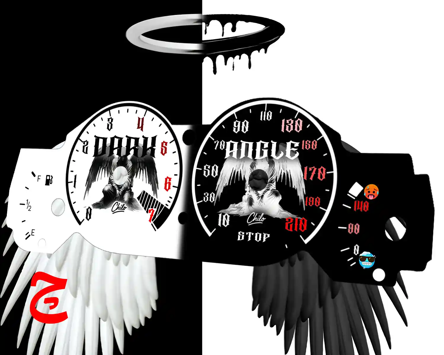 ورق کیلومتر با طراحی و دیزاین دارک آنجل یکی از طراحی های خاص به سبک دارک فرشته زندگی و مرگ برای افرادی که رانندگی مرحله اخر از زندگی و رهایی از بند افسردگی فقط فقط در سرزمین چیلو برای تمامی ماشین های موجود از پراید تا تسلا برای اولین بار در دنیا توسط مجموعه چیلو طراحی و تولید میشود